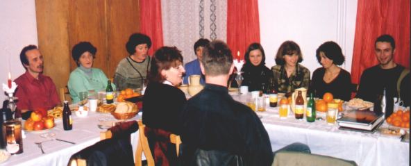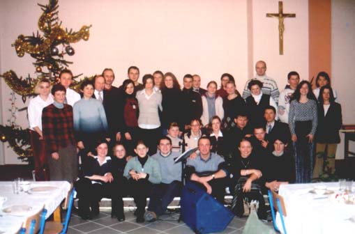 Wspólne zdjęcie członków Wspólnoty Muzycznej obecnych na opłatku 29-12-2002 r.