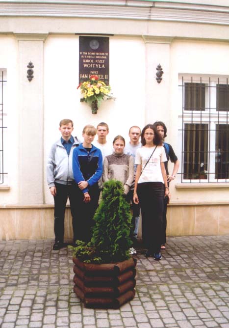 Przed domem rodzinnym Ojca Świętego w Wadowicach 9-08-2002 r.